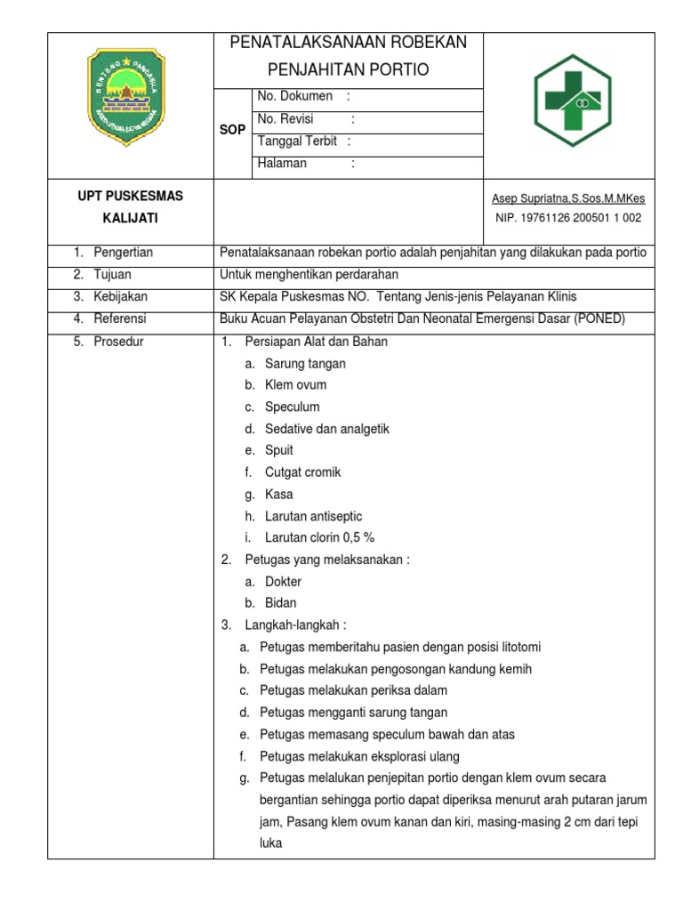 1. Pengertian Penatalaksanaan robekan portio adalah penjahitan yang dilakukan pada portio