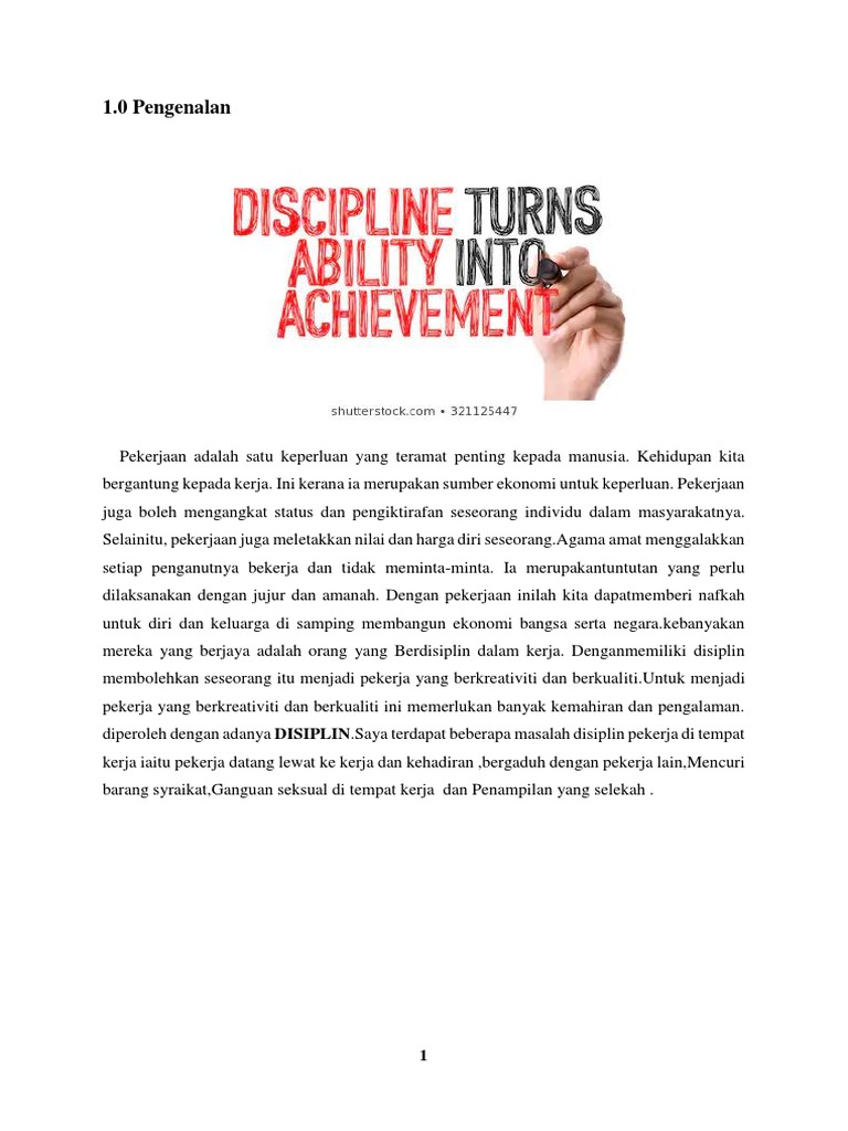 diperoleh dengan adanya DISIPLIN.Saya terdapat beberapa masalah disiplin pekerja di tempat