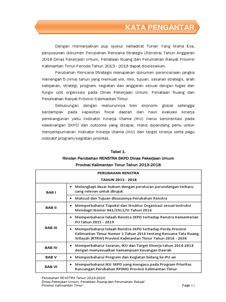 Perubahan Rencana strategis Dinas Pekerjaan Umum, Penataan Ruang dan
