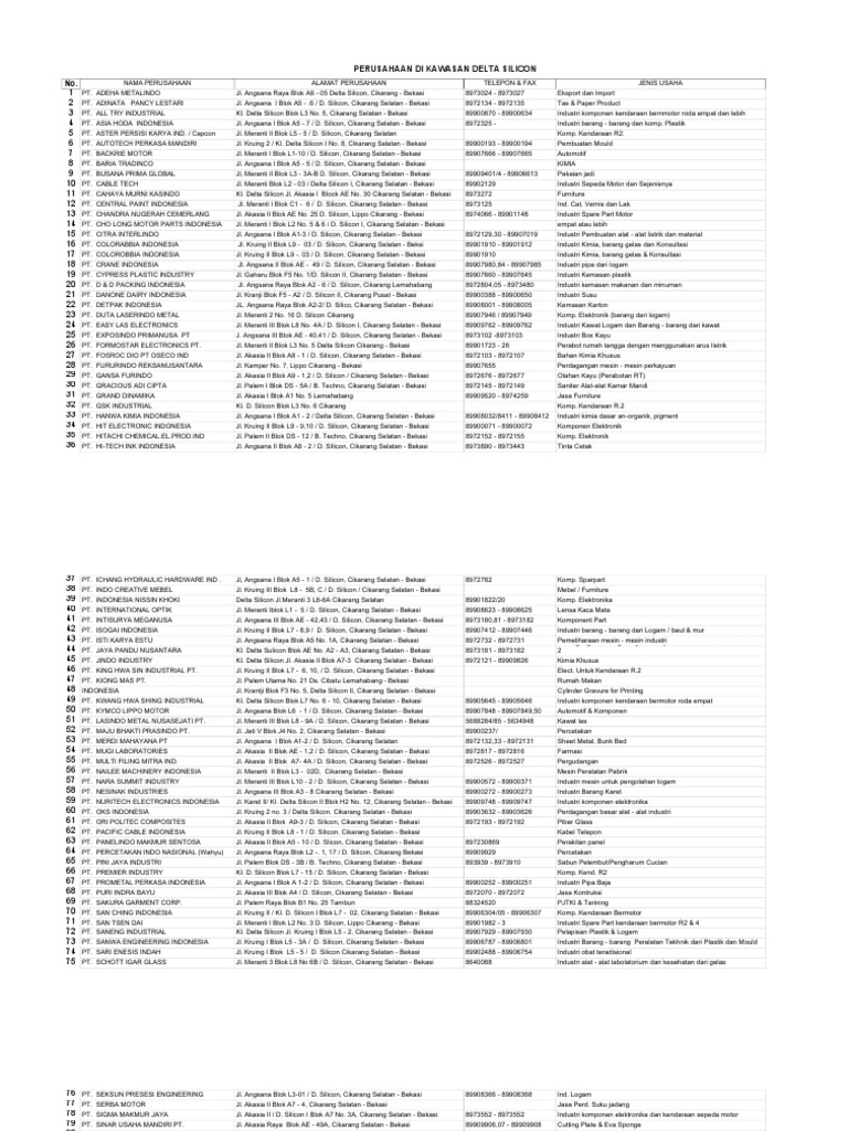 90 PT. TAVA INDONESIA LESTARI PT. KI. Delta Silicon Jl. Blok L1 no.Block.