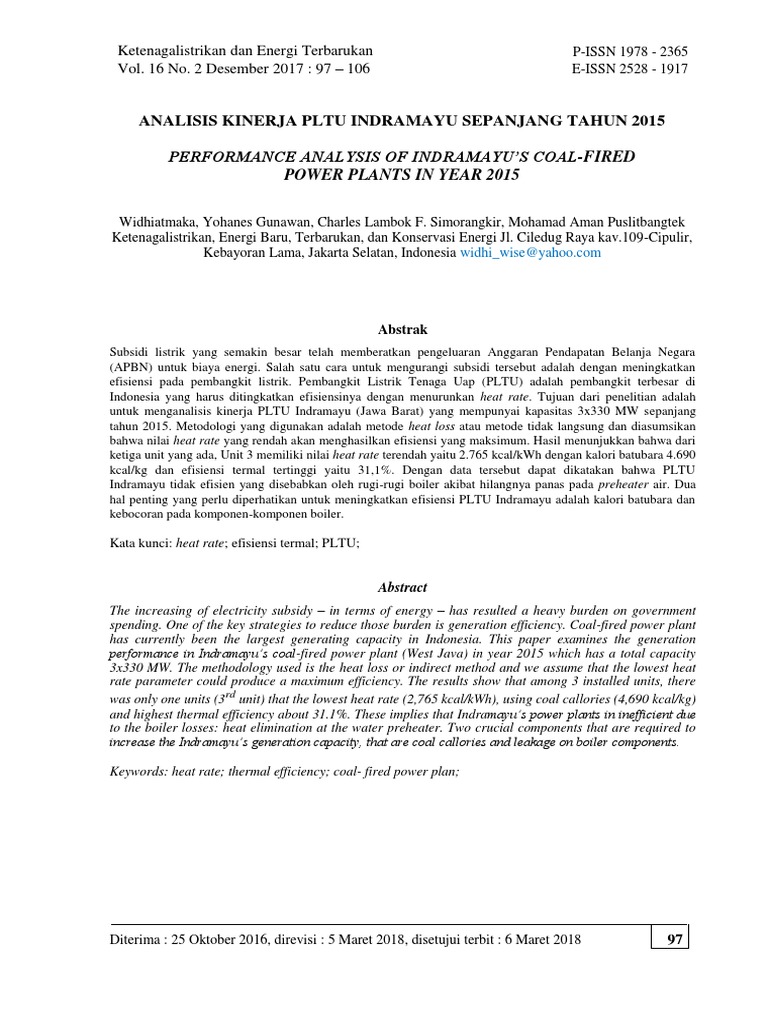 untuk menganalisis kinerja PLTU Indramayu (Jawa Barat) yang mempunyai kapasitas 3x330 MW sepanjang