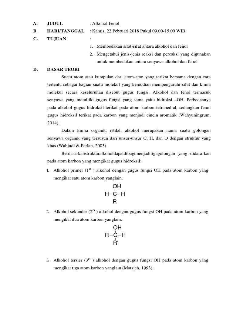 2 R-OH+2 Na→2R-ONa + H2 (Tim Kimia Organik, 2018).