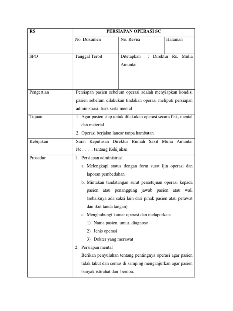 SPO Tanggal Terbit Ditetapkan : Direktur Rs. Mulia