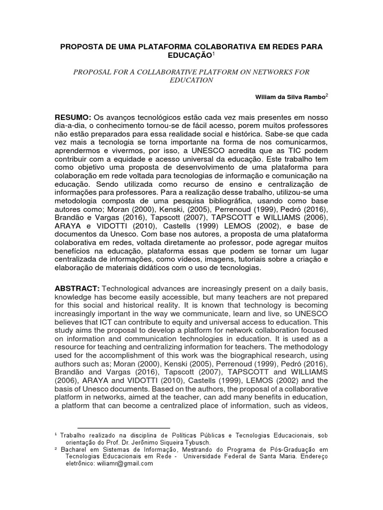 documentos da Unesco. Com base nos autores, a proposta de uma plataforma