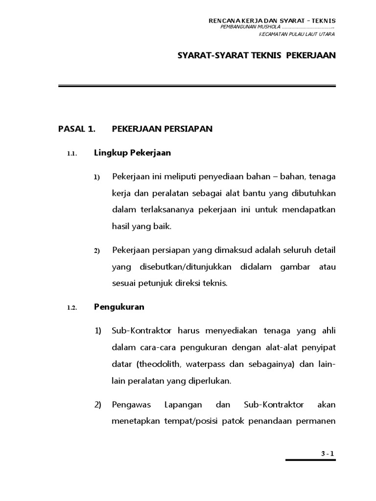 PASAL 1. PEKERJAAN PERSIAPAN