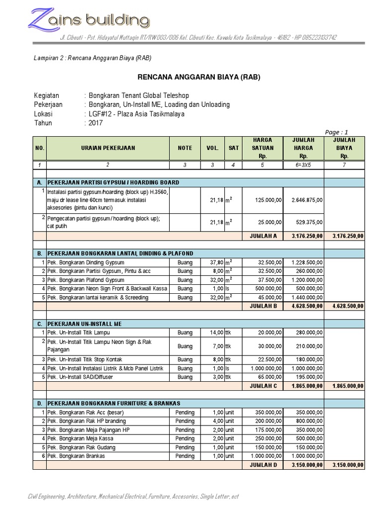 - RAB belum termasuk Listrik Kerja