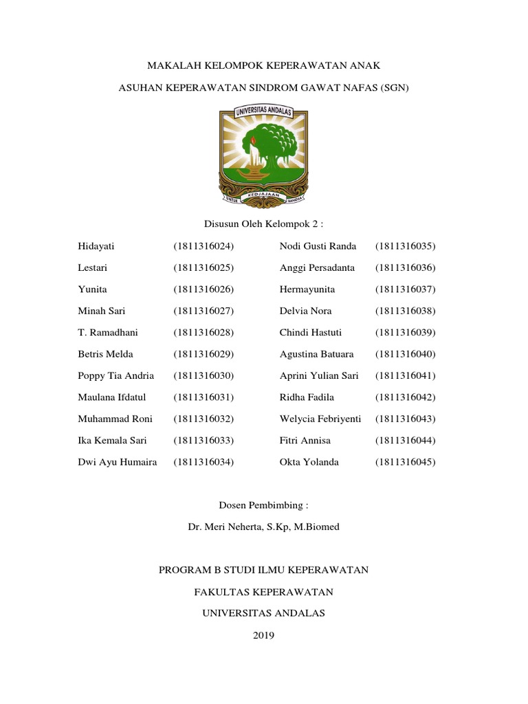Keperawatan Sindrom Gawat Nafas (SGN)” ini dengan baik meskipun banyak kekurangan