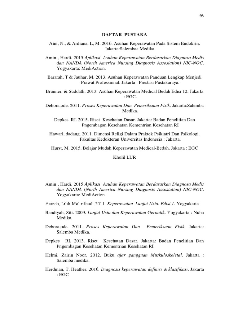 Hurst, M. 2015. Belajar Mudah Keperawatan Medical-Bedah. Jakarta : EGC