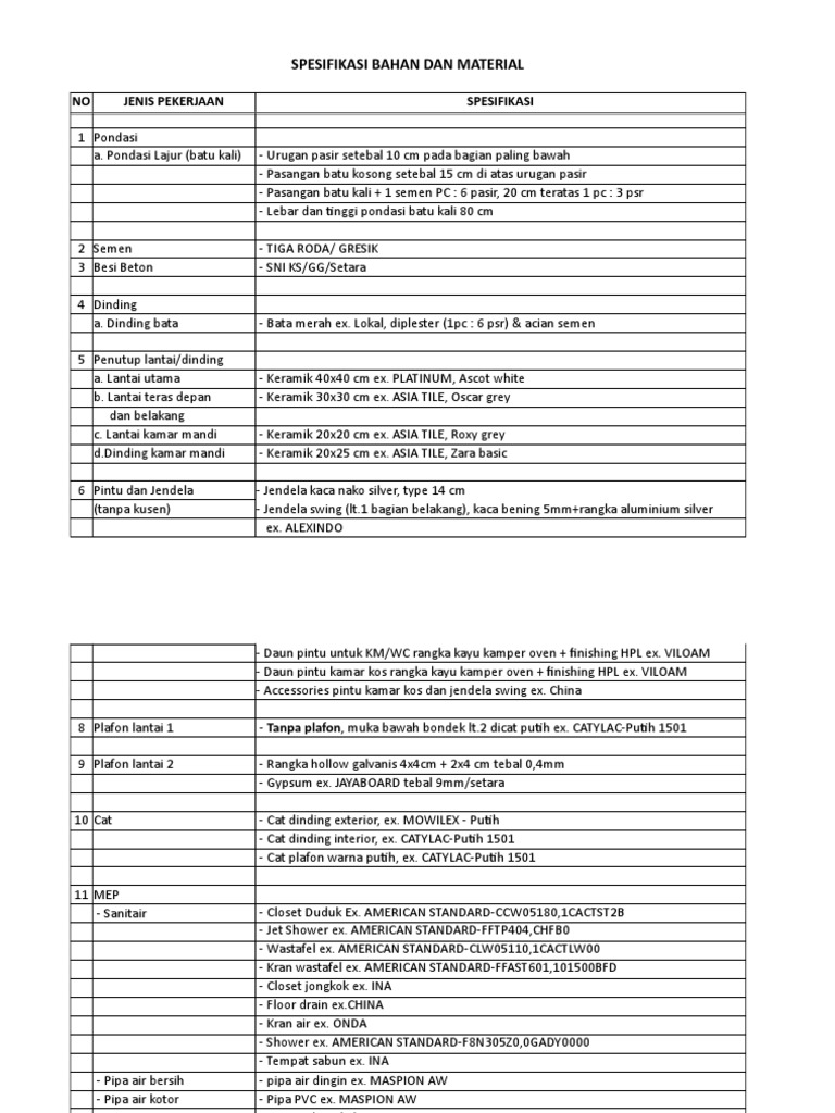 SPESIFIKASI BAHAN DAN MATERIAL