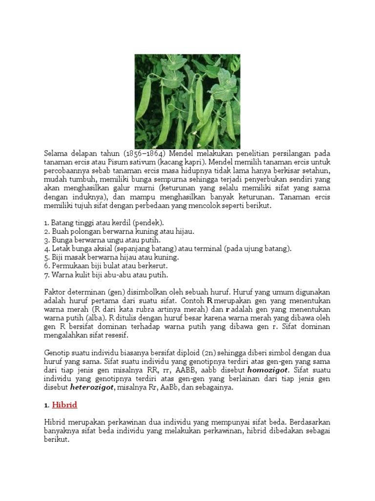 tanaman ercis atau Pisum sativum (kacang kapri). Mendel memilih tanaman ercis untuk