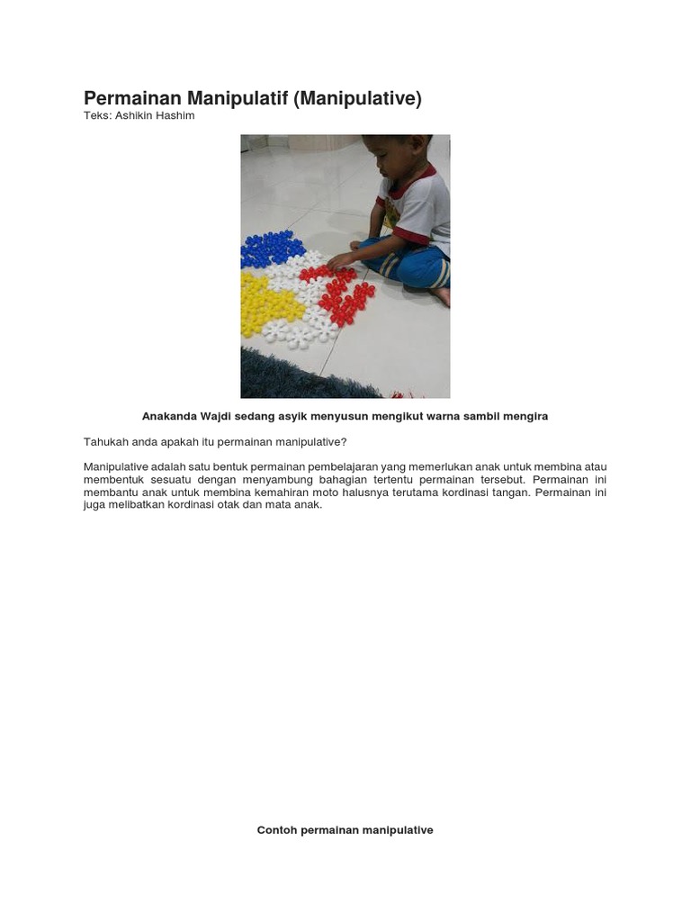Manipulative adalah satu bentuk permainan pembelajaran yang memerlukan anak untuk membina atau