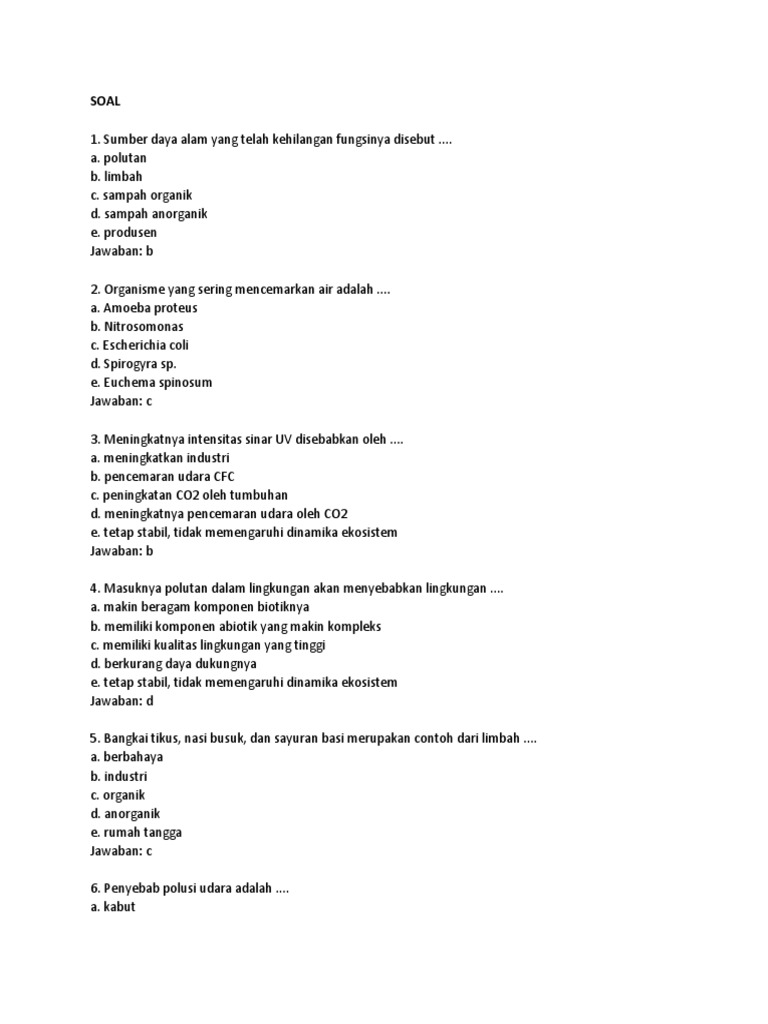 1. Suatu lingkungan dikatakan sudah tercemar bila....