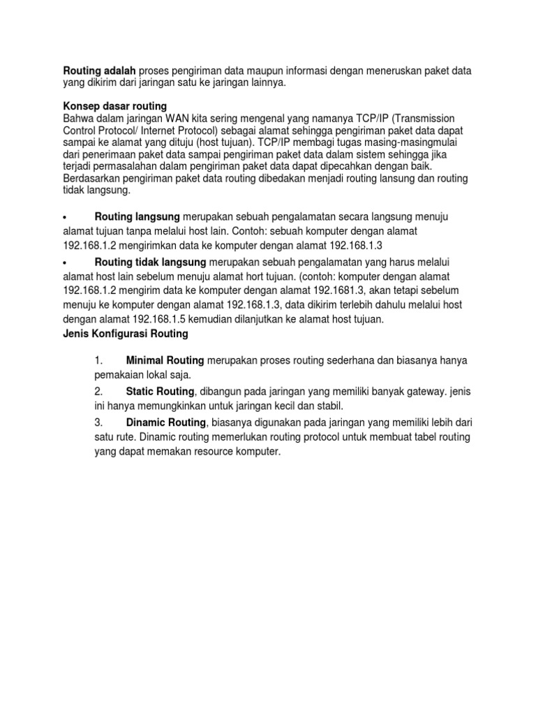 1. Routing, adalah sebuah proses untuk meneruskan paket-paket jaringan dari satu jaringan ke