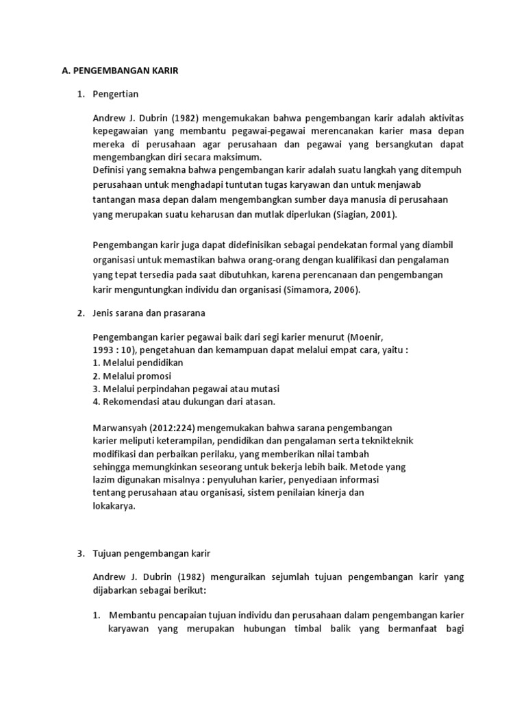 Andrew J. Dubrin (1982) mengemukakan bahwa pengembangan karir adalah aktivitas