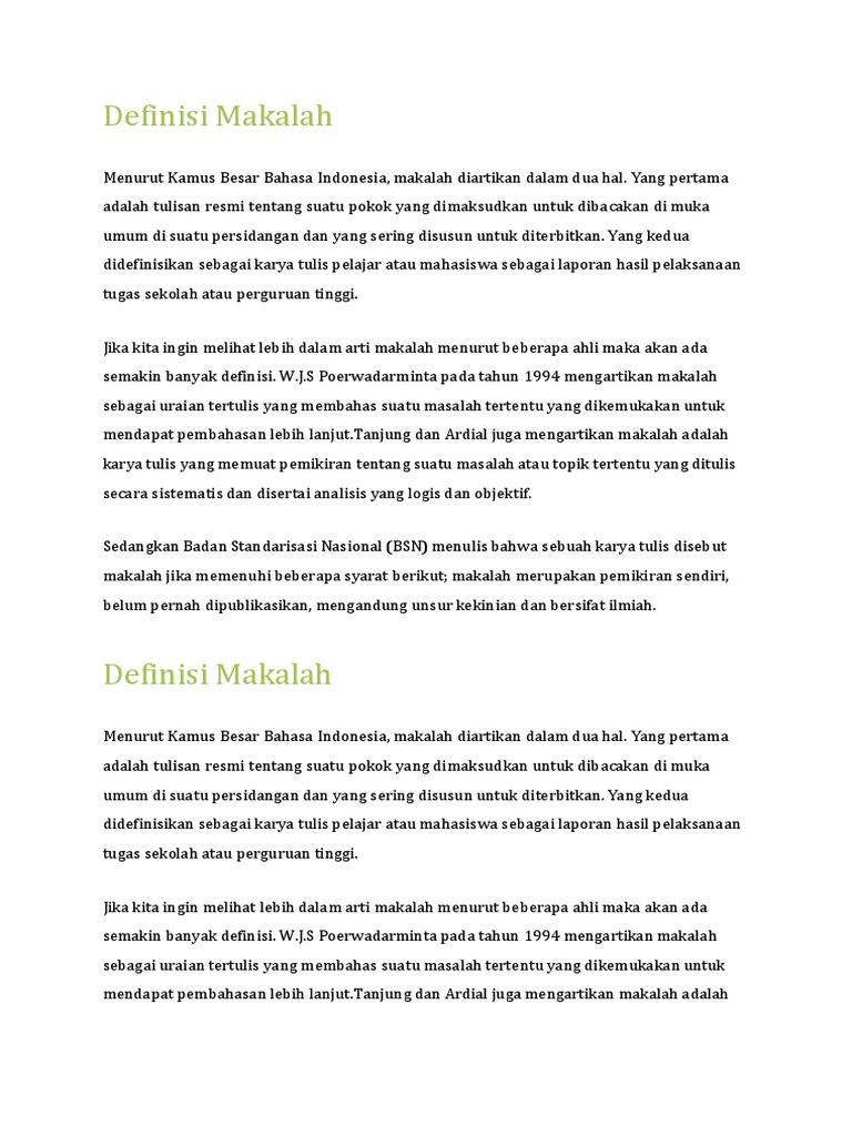 semakin banyak definisi. W.J.S Poerwadarminta pada tahun 1994 mengartikan makalah