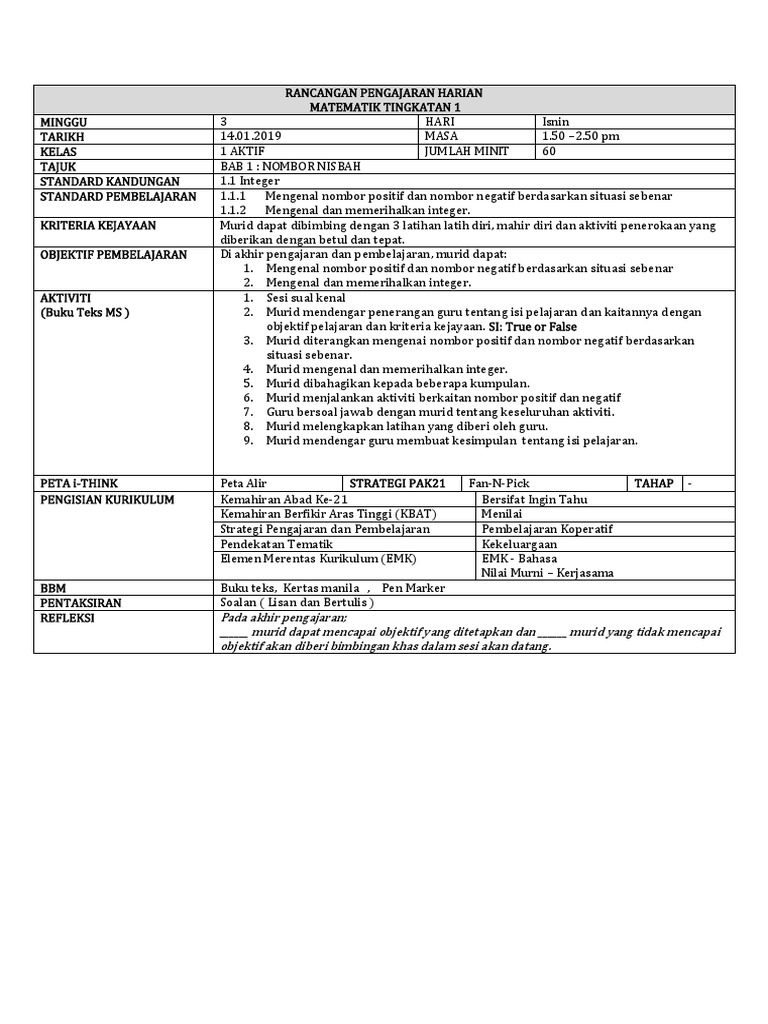 1. Mengenal nombor positif dan nombor negatif berdasarkan situasi sebenar
