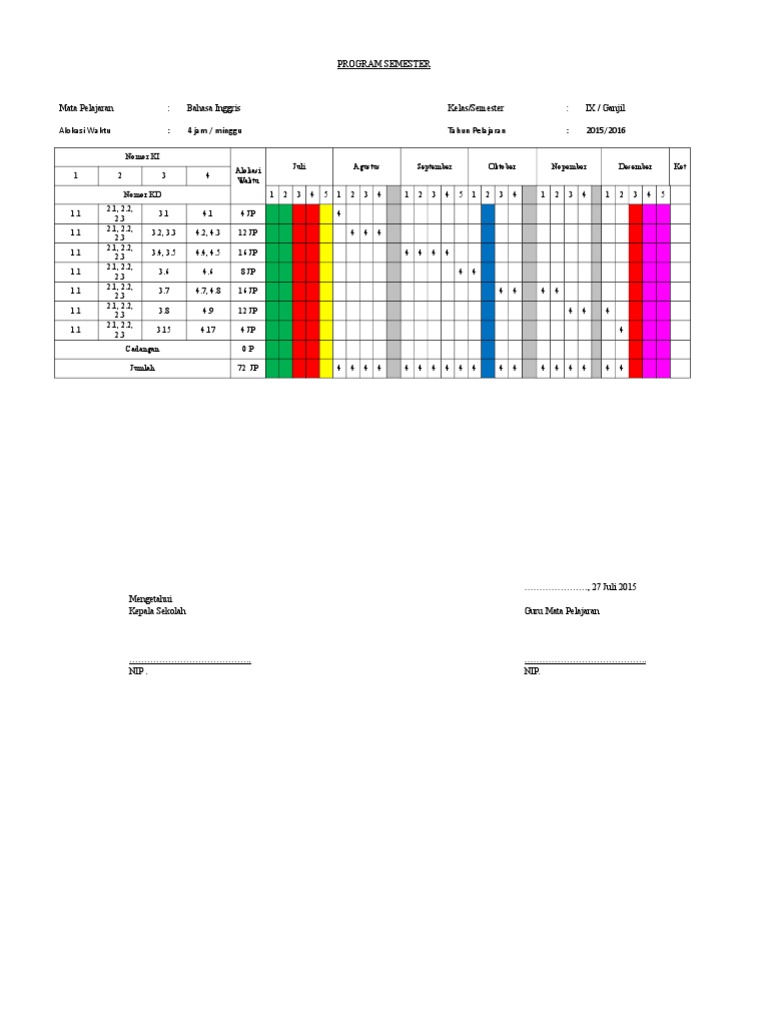 Alokasi Waktu : 4 jam / minggu Tahun Pelajaran : 2015/2016