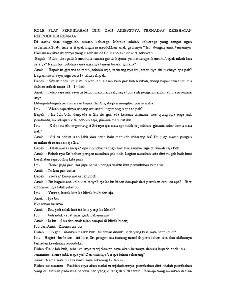 ROLE PLAY PERNIKAHAN DINI DAN AKIBATNYA TERHADAP KESEHATAN