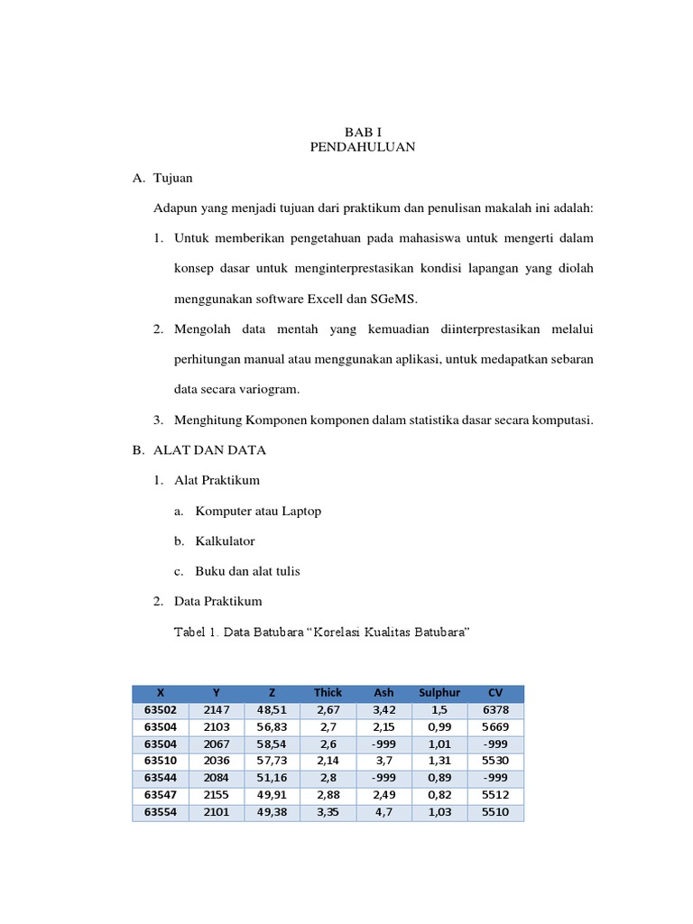 Tabel 1. Data Batubara “Korelasi Kualitas Batubara”