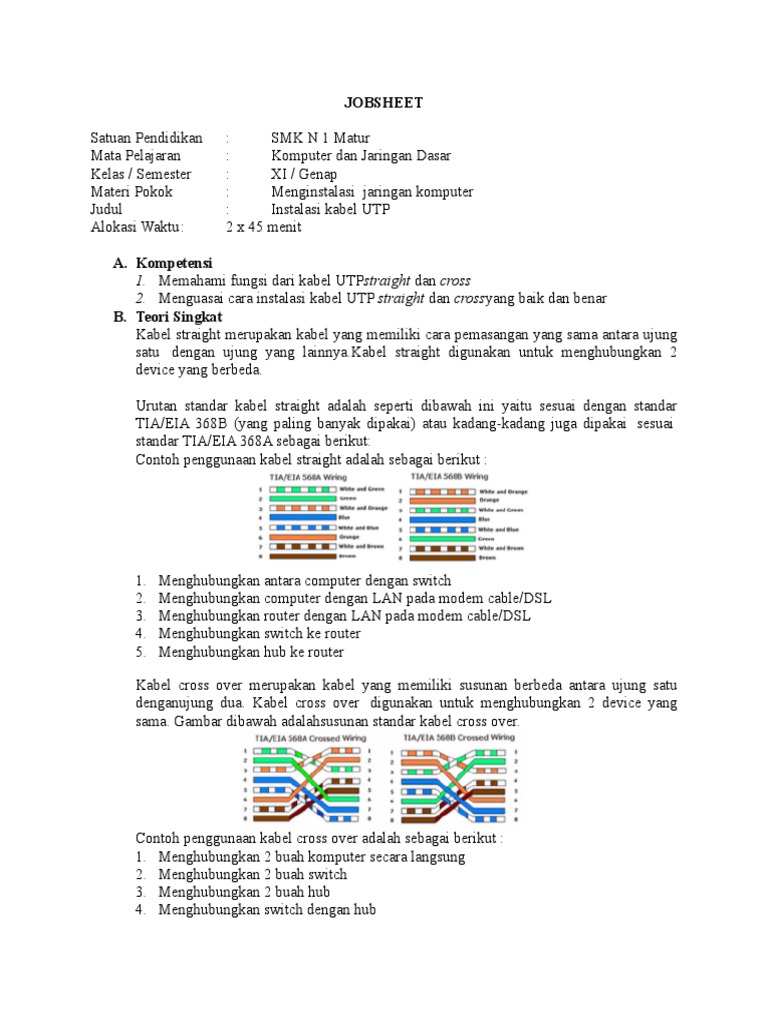 2. Menguasai cara instalasi kabel UTP straight dan crossyang baik dan benar