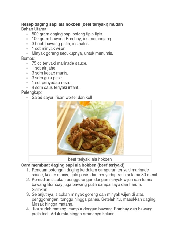 Resep daging sapi ala hokben (beef teriyaki) mudah