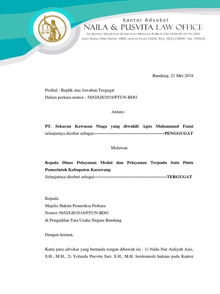 tanggal Karawang, 4 April 2018, dengan ini hendak mengajukan replik. Replik ini