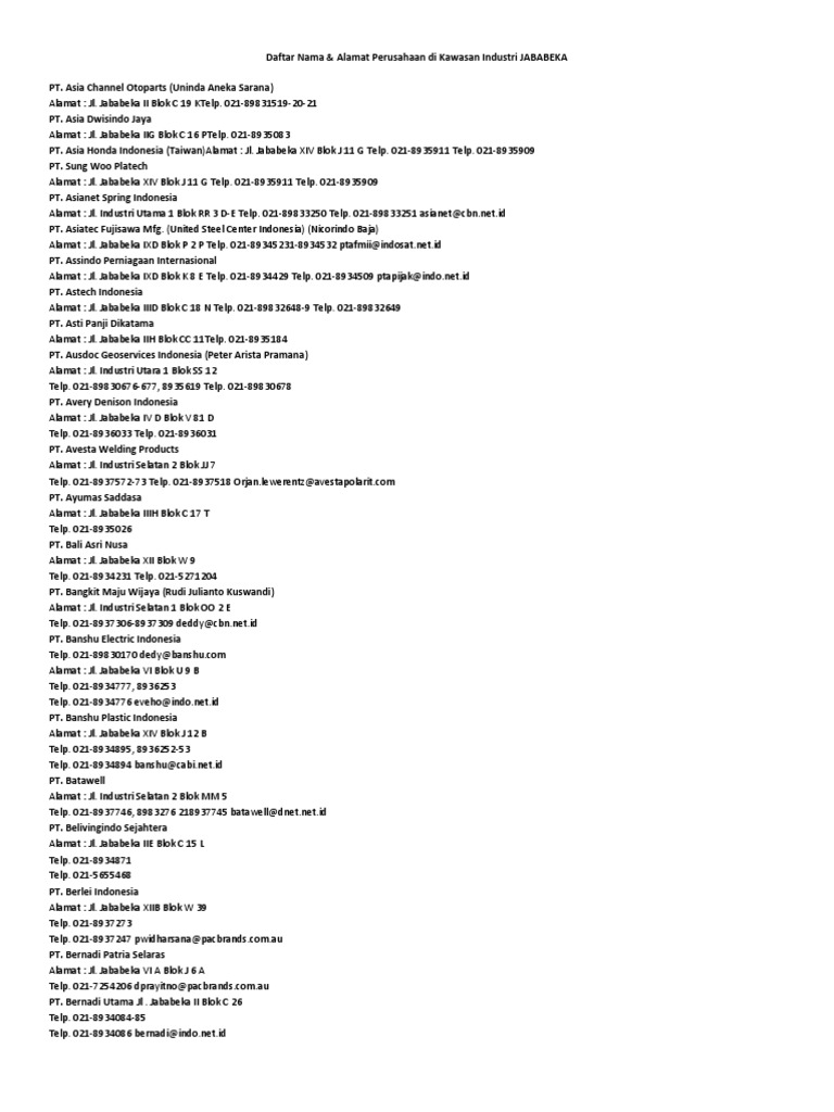 Daftar Nama & Alamat Perusahaan di Kawasan Industri JABABEKA