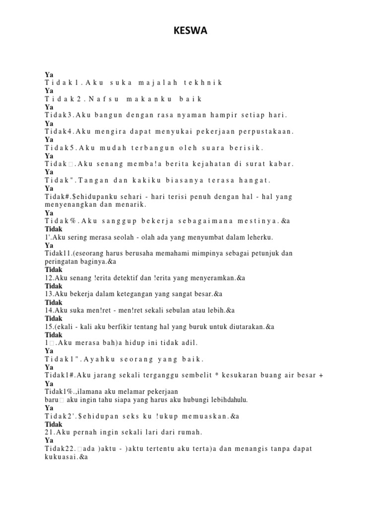 Tidak4#4.Aku mempunyai satu atau lebih kekurangan - kekurangan yang demikian