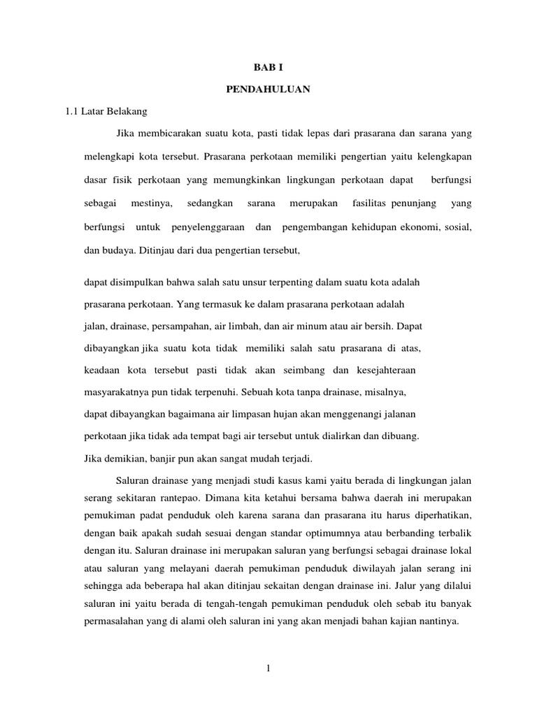 pandang yang lain, drainase adalah salah satu unsur dari prasarana umum yang