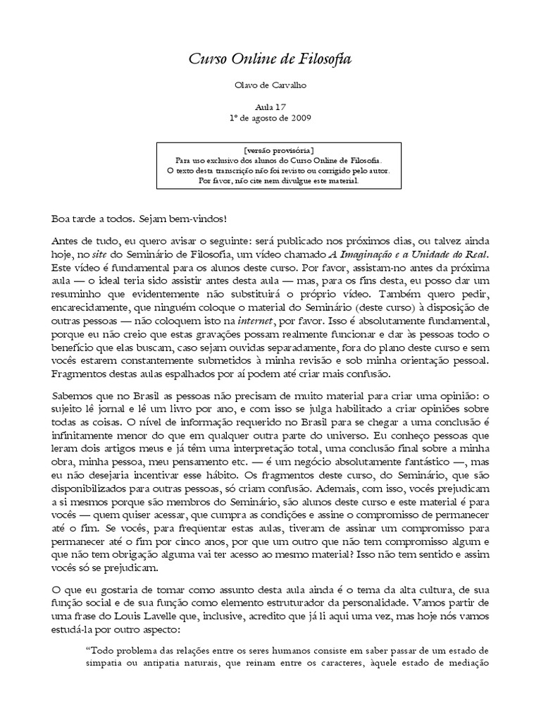 Para uso exclusivo dos alunos do Curso Online de Filosofia.
