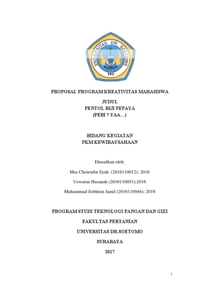 PENGESAHAN PROPOSAL PKM-KEWIRAUSAHAAN