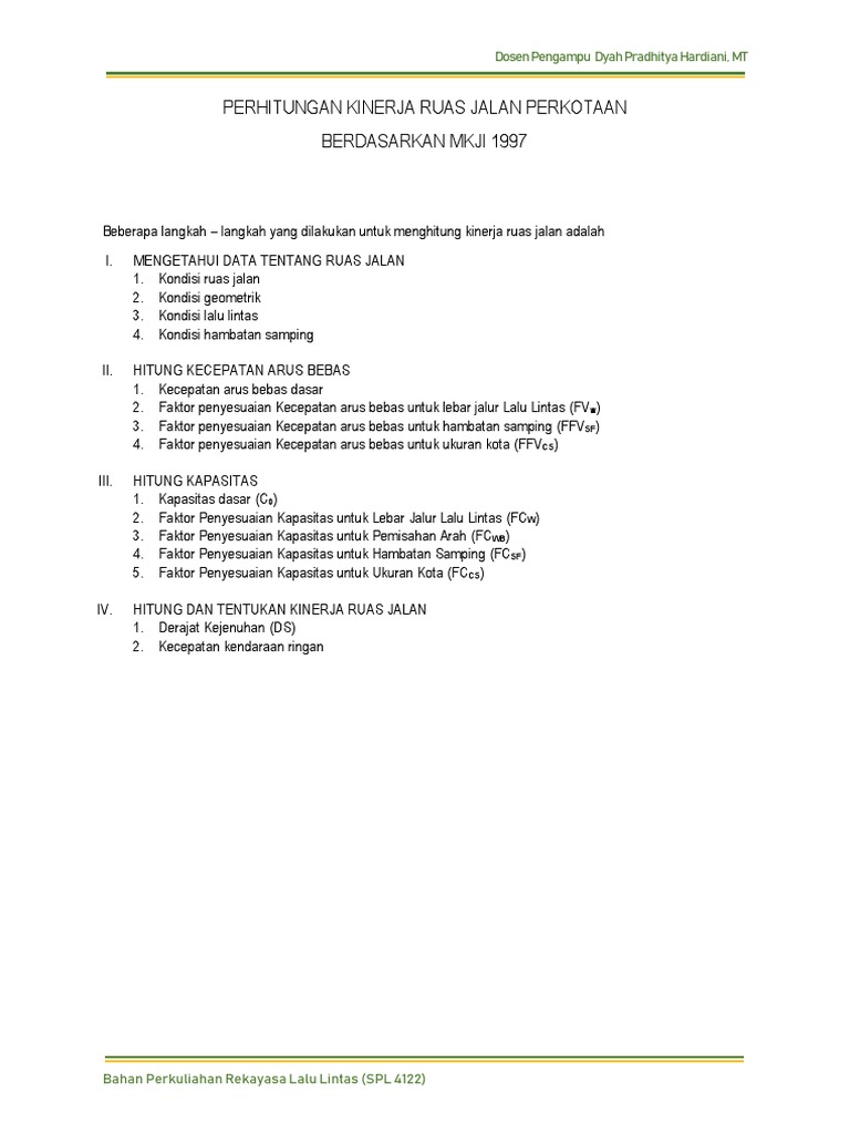 Bahan Perkuliahan Rekayasa Lalu Lintas (SPL 4122)
