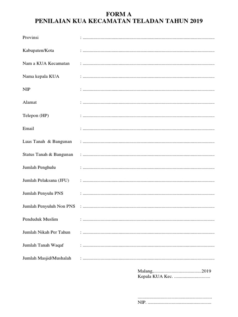 PENILAIAN KUA KECAMATAN TELADAN TAHUN 2019