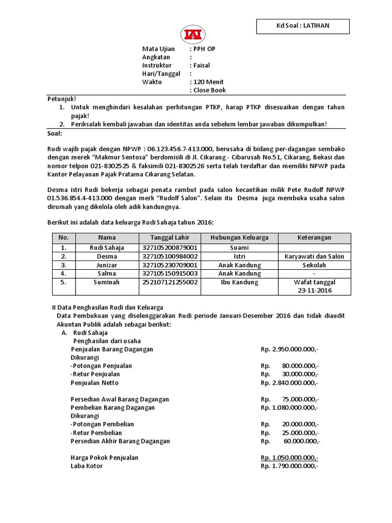 1. Hitung pajak penghasilan Rudi Sahaja tahun 2016 dan mengisikannya ke SPT Tahunan
