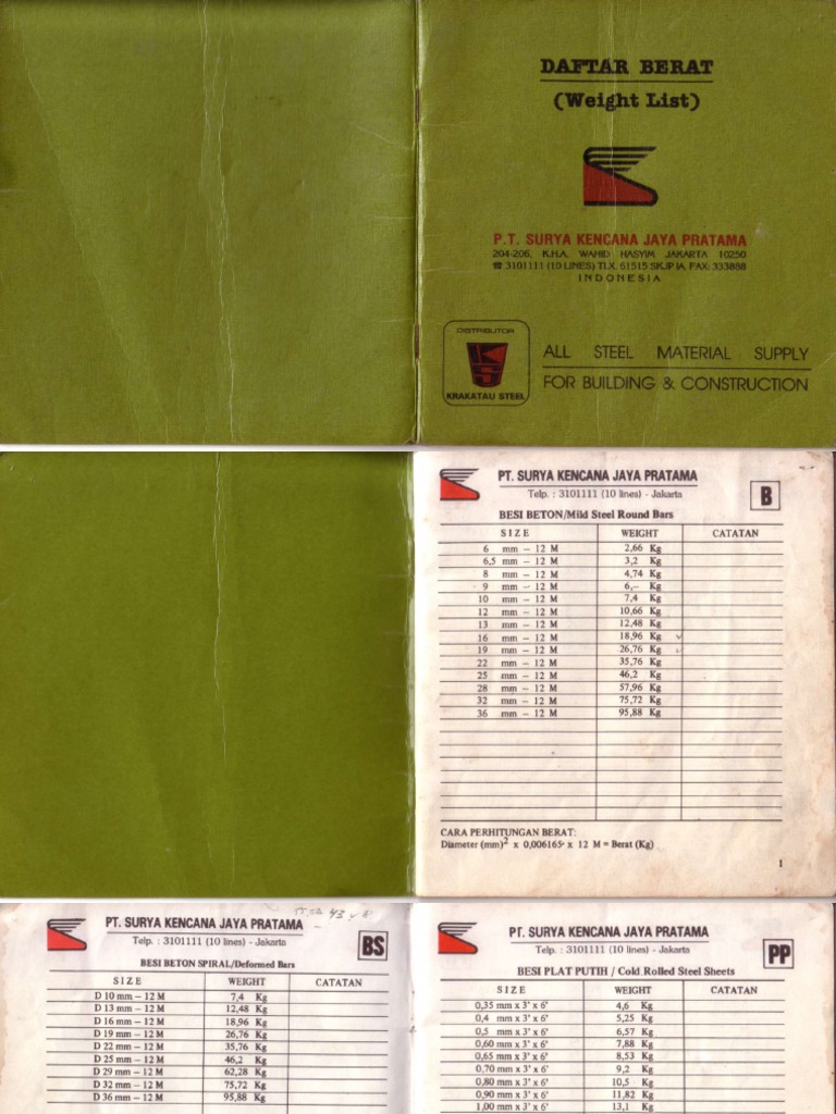 Spesifikasi dan Berat Besi PT Surya