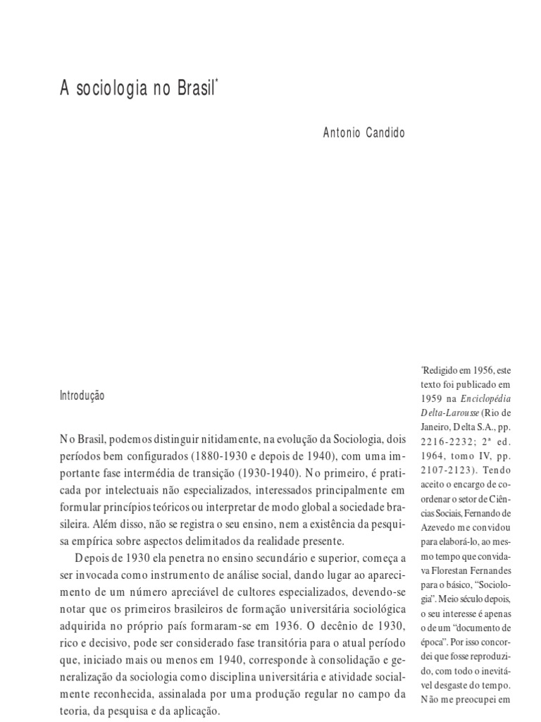 No Brasil, podemos distinguir nitidamente, na evolução da Sociologia, dois 2216-2232; 2ª ed.