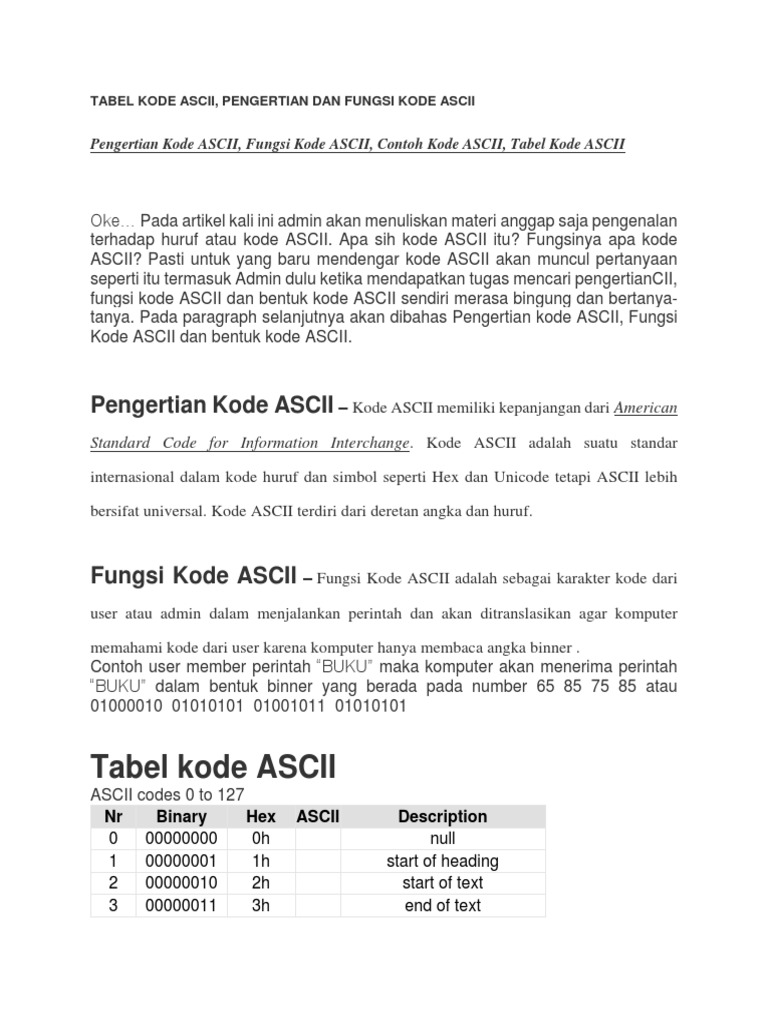 Kode ASCII, Contoh Kode ASCII dan Tabel Kode ASCII semoga dapat membantu