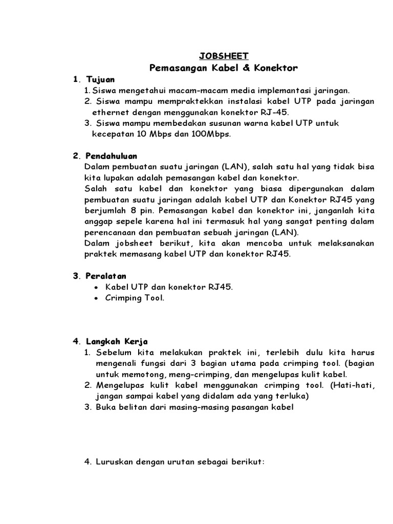 2. Siswa mampu mempraktekkan instalasi kabel UTP pada jaringan