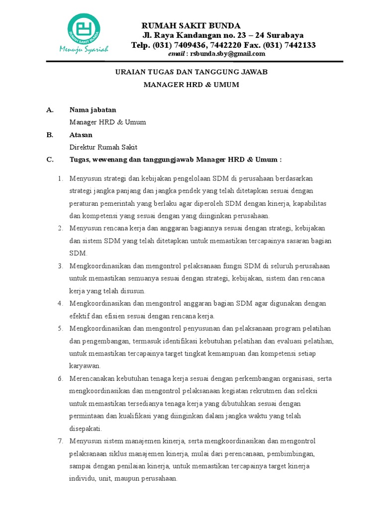C. Tugas, wewenang dan tanggungjawab Manager HRD & Umum :