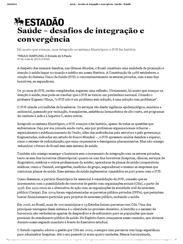 https://opiniao.estadao.com.br/noticias/espaco-aberto,saude-desafios-de-integracao-e-convergencia,70002818439?fbclid=IwAR0sXN-QX53FFaGZ2kp3WAkDQZufxQ0i1xrimkdag06… 1/3