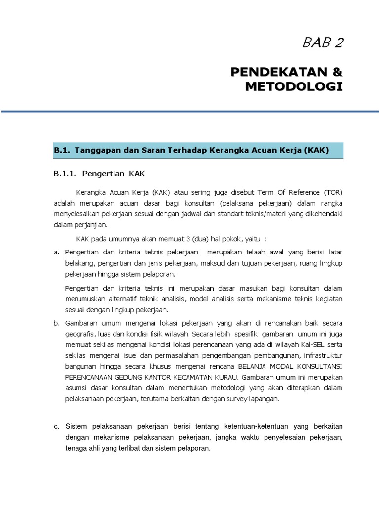 a. Pengertian dan kriteria teknis pekerjaan merupakan telaah awal yang berisi latar