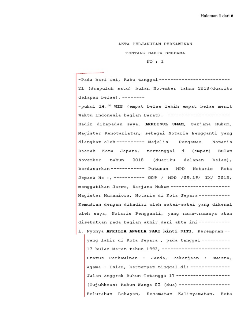 1. Nyonya APRILIA ANGELA SARI binti SITI, Perempuan --