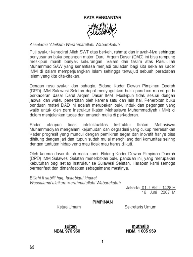 perkaderan dasar Darul Arqam Dasar IMM. Meskipun tidak sesuai dengan