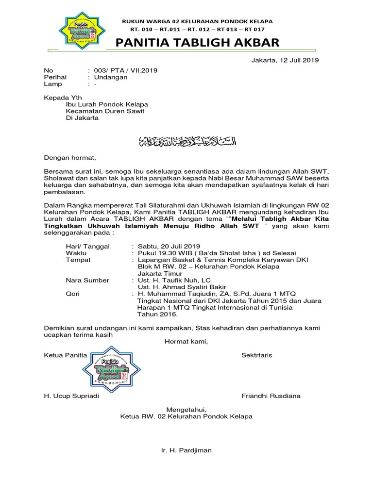 Kelurahan Pondok Kelapa, Kami Panitia TABLIGH AKBAR mengundang kehadiran Ibu