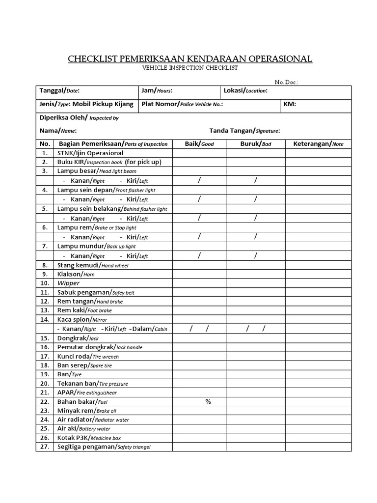 CHECKLIST PEMERIKSAAN KENDARAAN OPERASIONAL