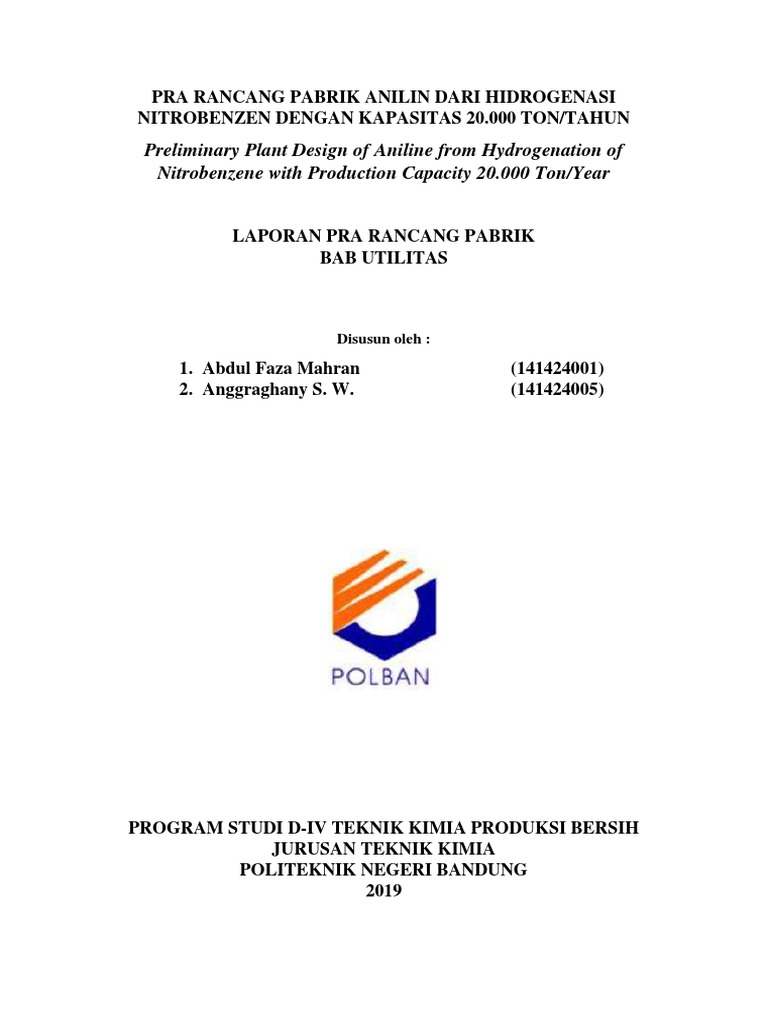 PRA RANCANG PABRIK ANILIN DARI HIDROGENASI