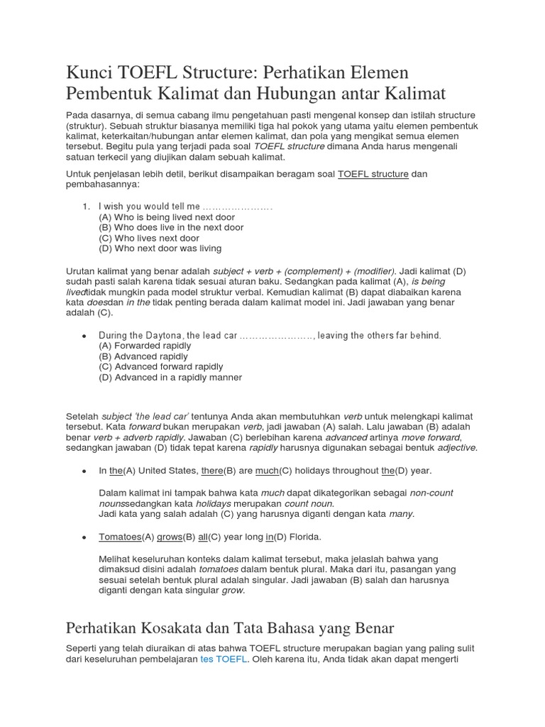 yang ada dalam soal toefl dan pembahasannya mengenai soal toefl structure and