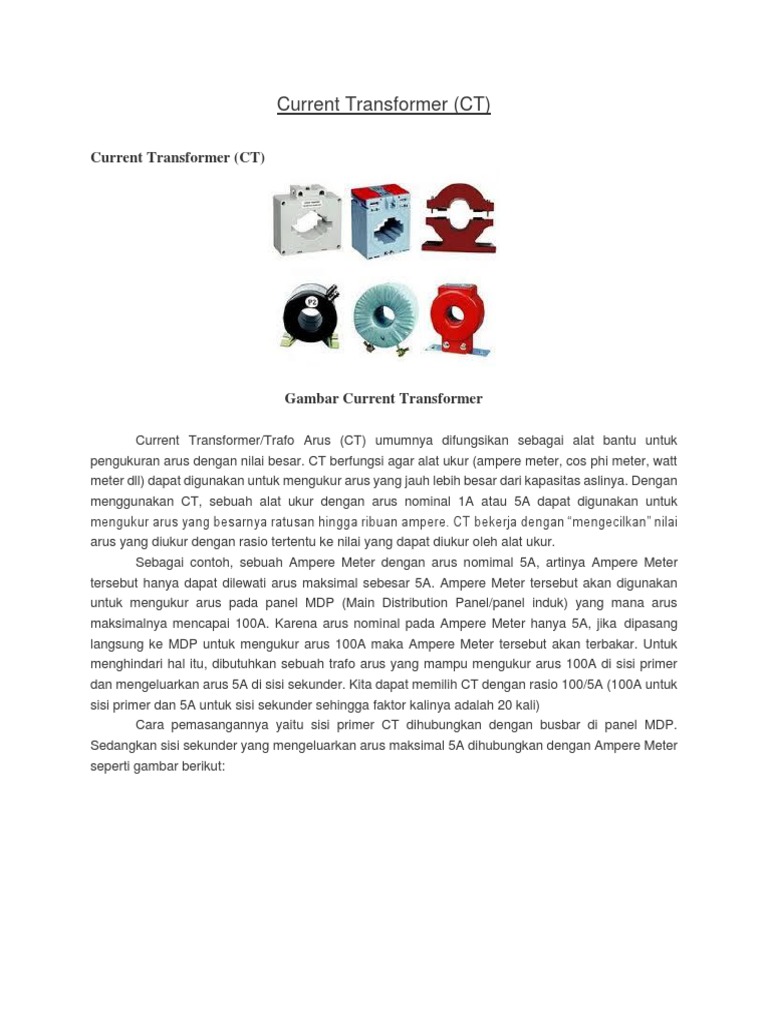 Current Transformer/Trafo Arus (CT) umumnya difungsikan sebagai alat bantu untuk