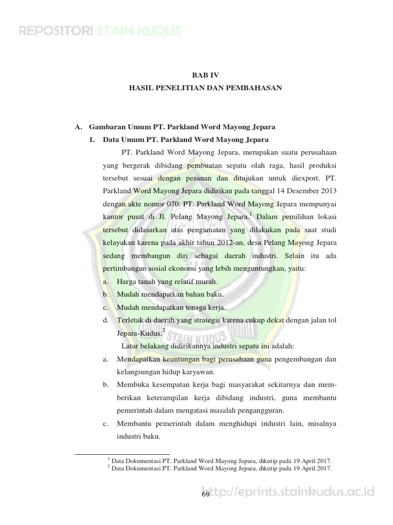 A. Gambaran Umum PT. Parkland Word Mayong Jepara