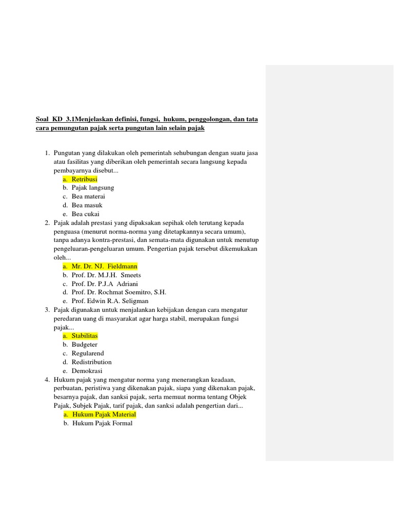 Soal KD 3.2Menjelaskan tentang wajib pajak, hak-hak dan kewajiban